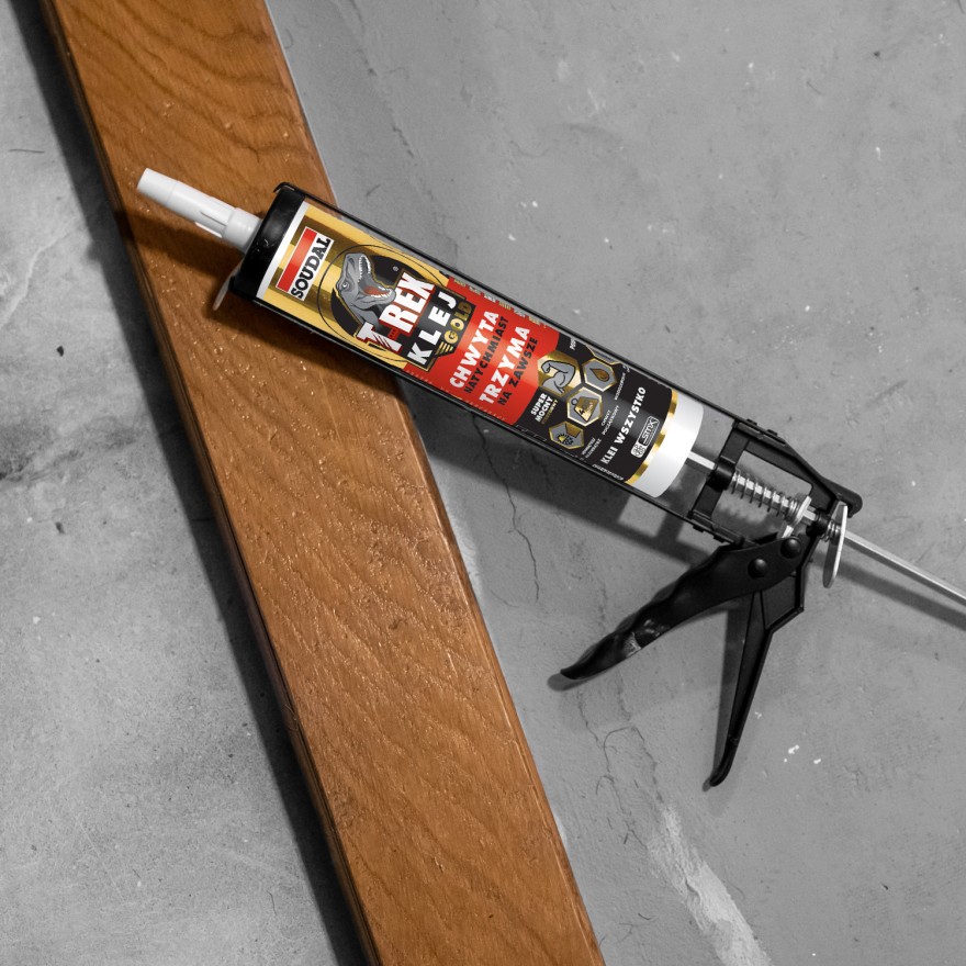 T-REX GOLD marki Soudal jest uniwersalnym klejem montażowym, który doskonale sprawdzi się podczas klejenia typowych materiałów budowlanych, wszelkiego rodzaju materiałów wykończeniowych i dekoracyjnych na ścianach podłogach i sufitach. Przeznaczony jest do elementów wykonanych z drewna, szkła, lustra, styropianu, metalu, PVC, gipsu, płyt g-k, stali nierdzewnej, stali ocynkowanej, kamienia sztucznego i naturalnego, betonu, cegły, korka, ceramiki, porcelany, wełny mineralnej i waty szklanej. Z powodzeniem możemy go zastosować również do awaryjnego klejenia materiałów dekarskich oraz do odpornego na wibracje i wilgoć mocowania elementów konstrukcyjnych. Klej ten jest bardzo łatwy w aplikacji, zdecydowanie usprawnia realizację prac montażowych oraz daje gwarancję trwałego efektu.